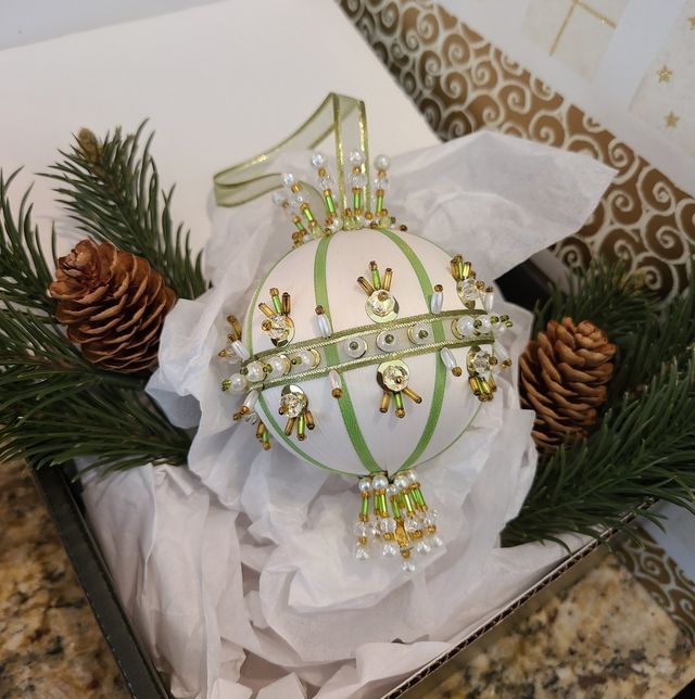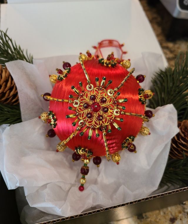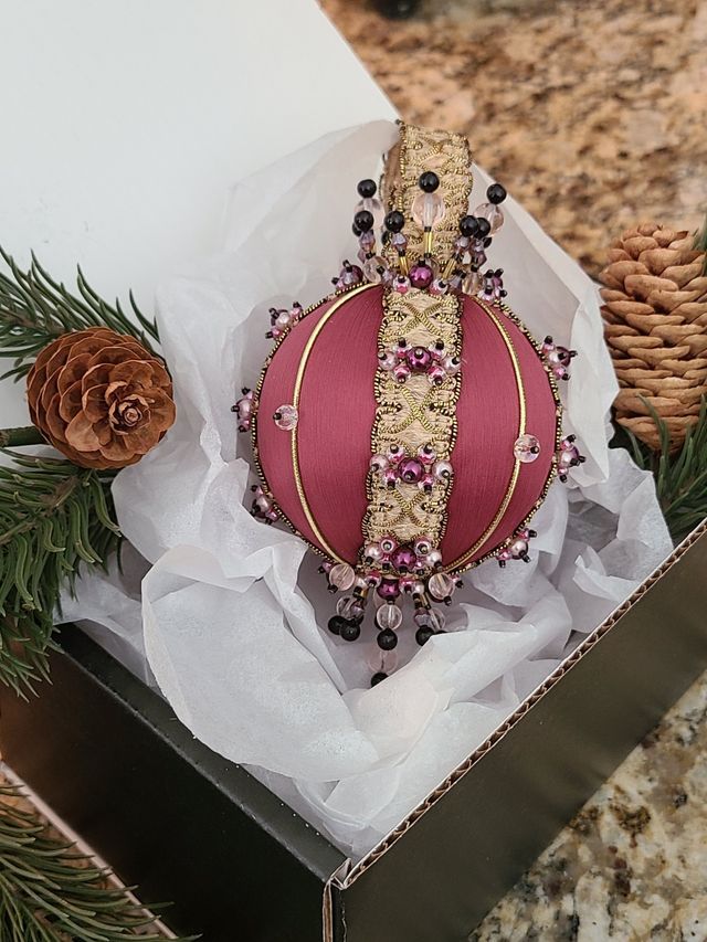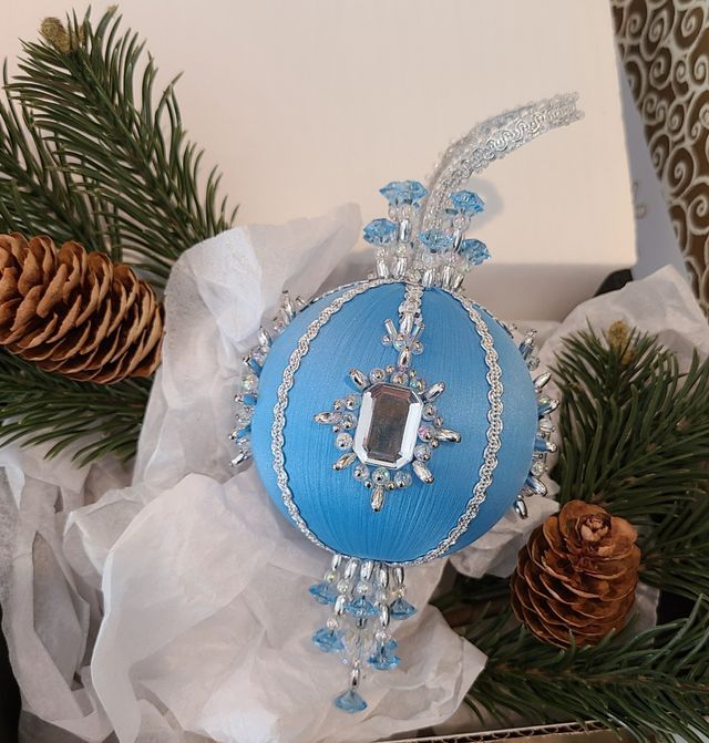 My ornaments are not mass-produced like you see in popular stores. Because of their beauty and originality, they will become a quality traditional piece you will have in your family for generations. Year after year, you will decorate your tree with an original stunning piece that will stand out yet tie your holiday décor together. Every ornament comes with a keepsake box to store and protect your ornament from wear and age.